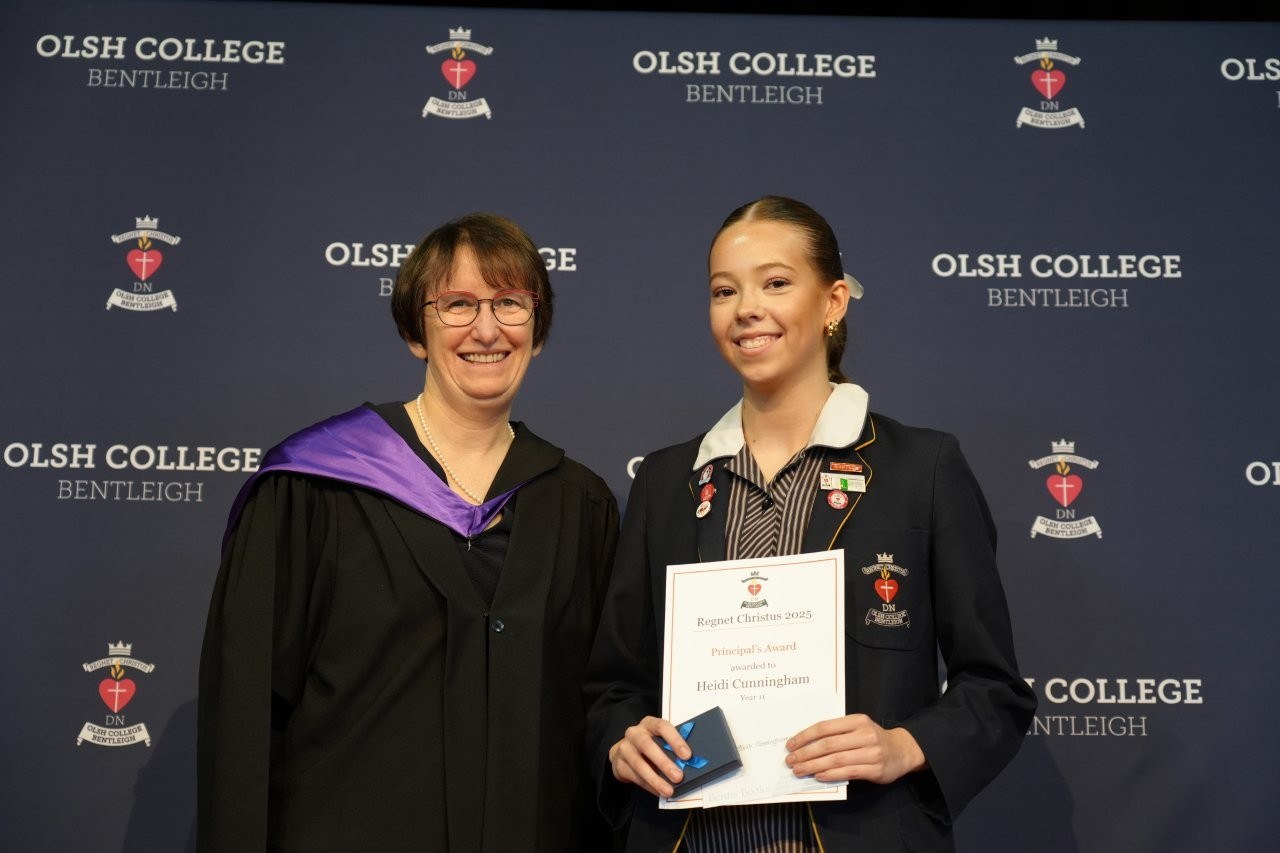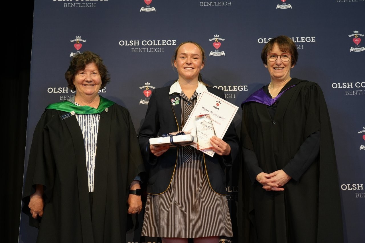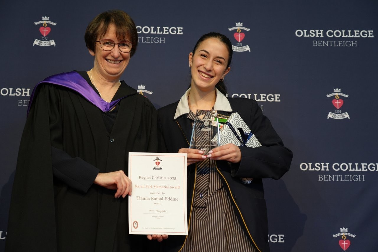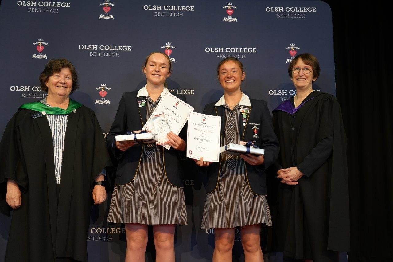 Our Regnet Christus Awards recognised academic achievement, consistent application to studies and a demonstration of the OLSH College values by students across all year levels. Principal Anne O’Loughlin spoke of the pioneering spirit of the first OLSH Sisters and how that has been a recuring theme in 2025 in the initiatives of our students – from representing Australia at the APEC Stem Conference, to developing the student theme that has left a legacy of creating a ripple of kindness. It was a joy to celebrate growth, excellence and all that it means to be a Heart person