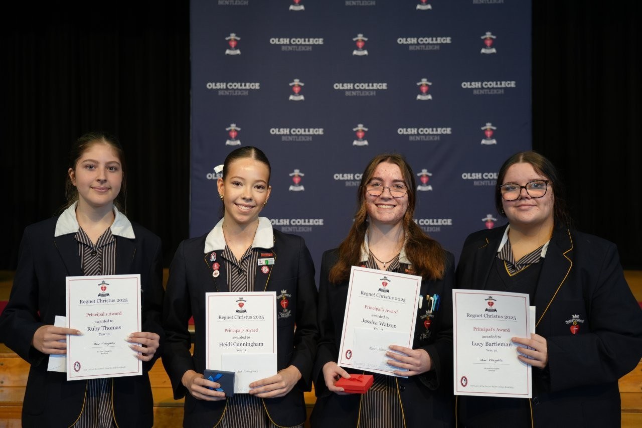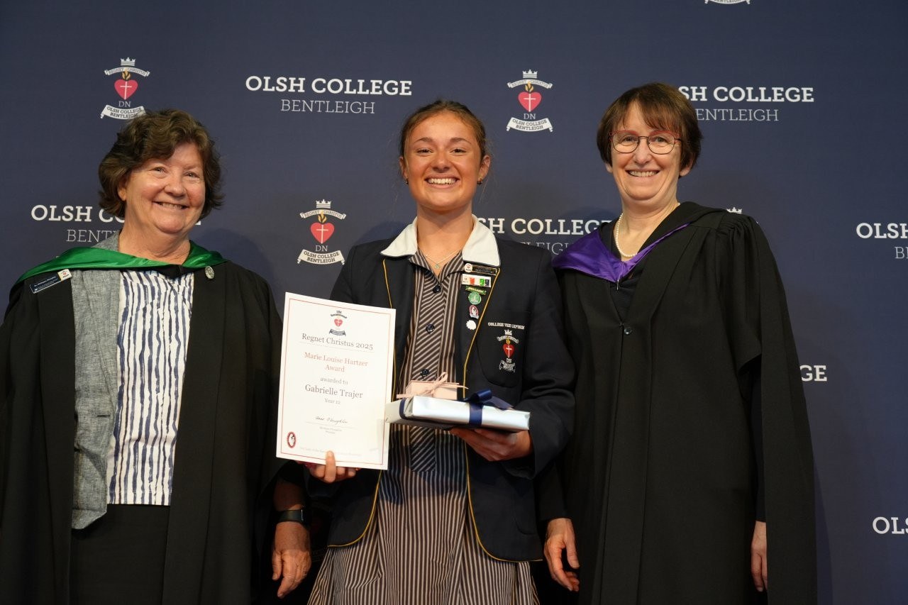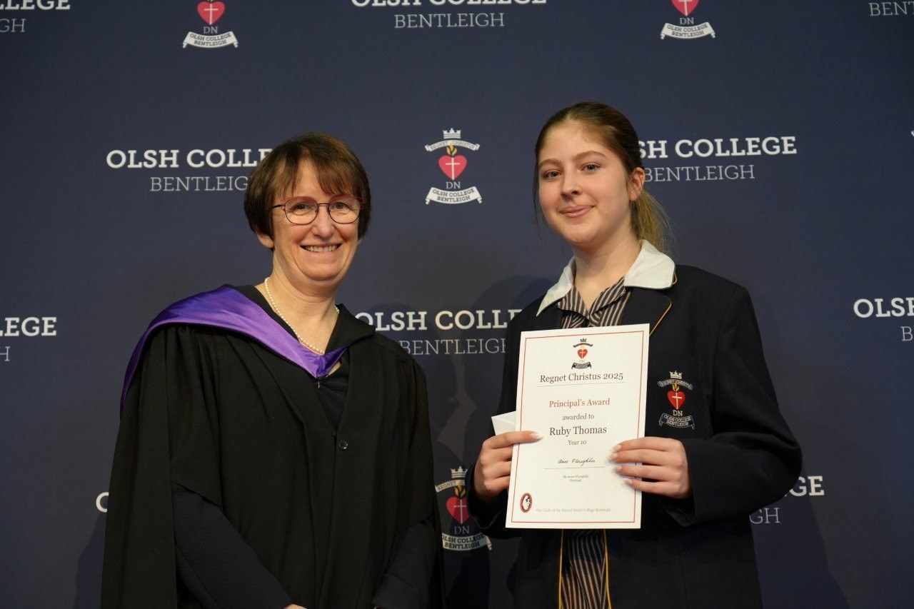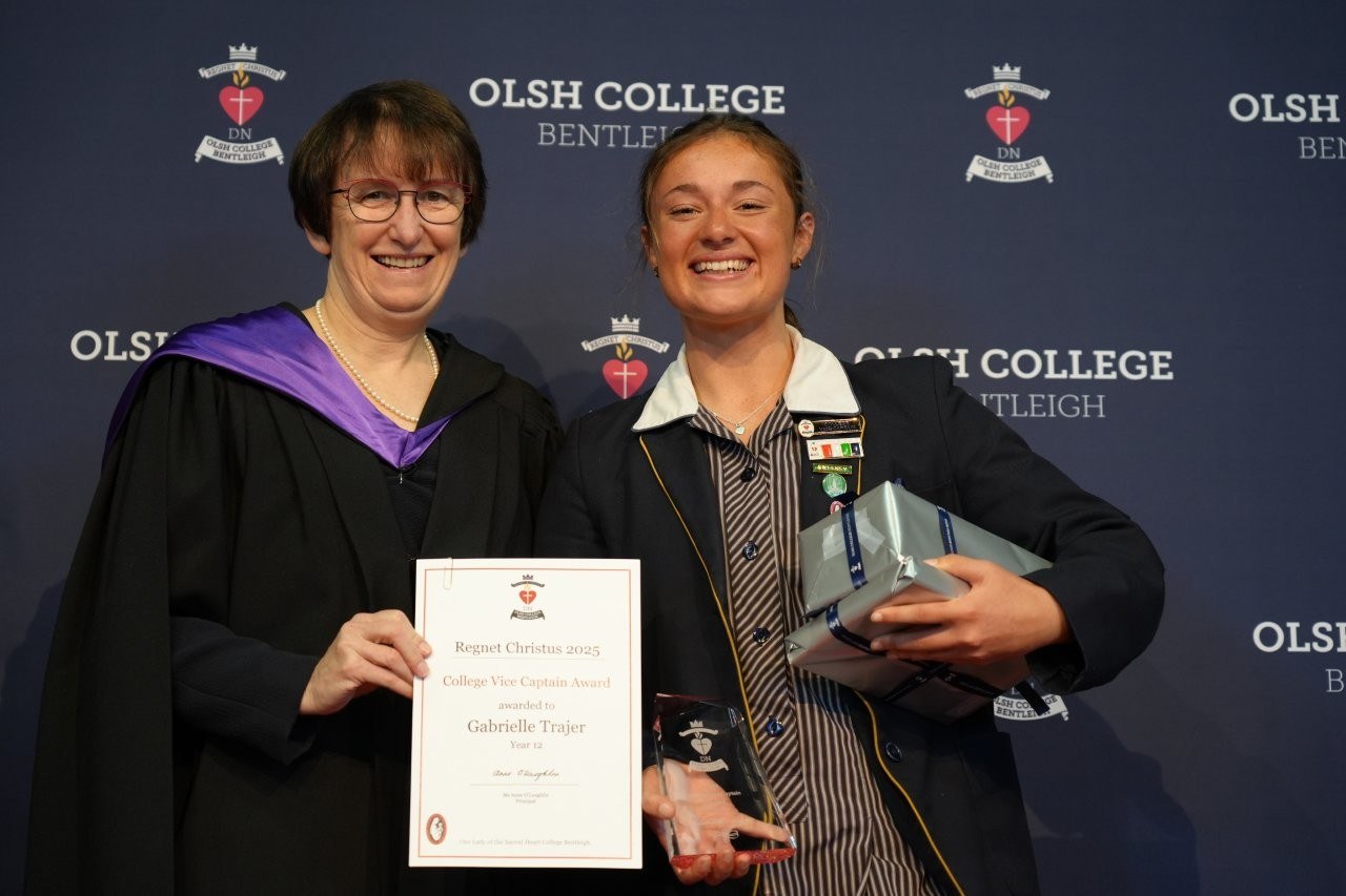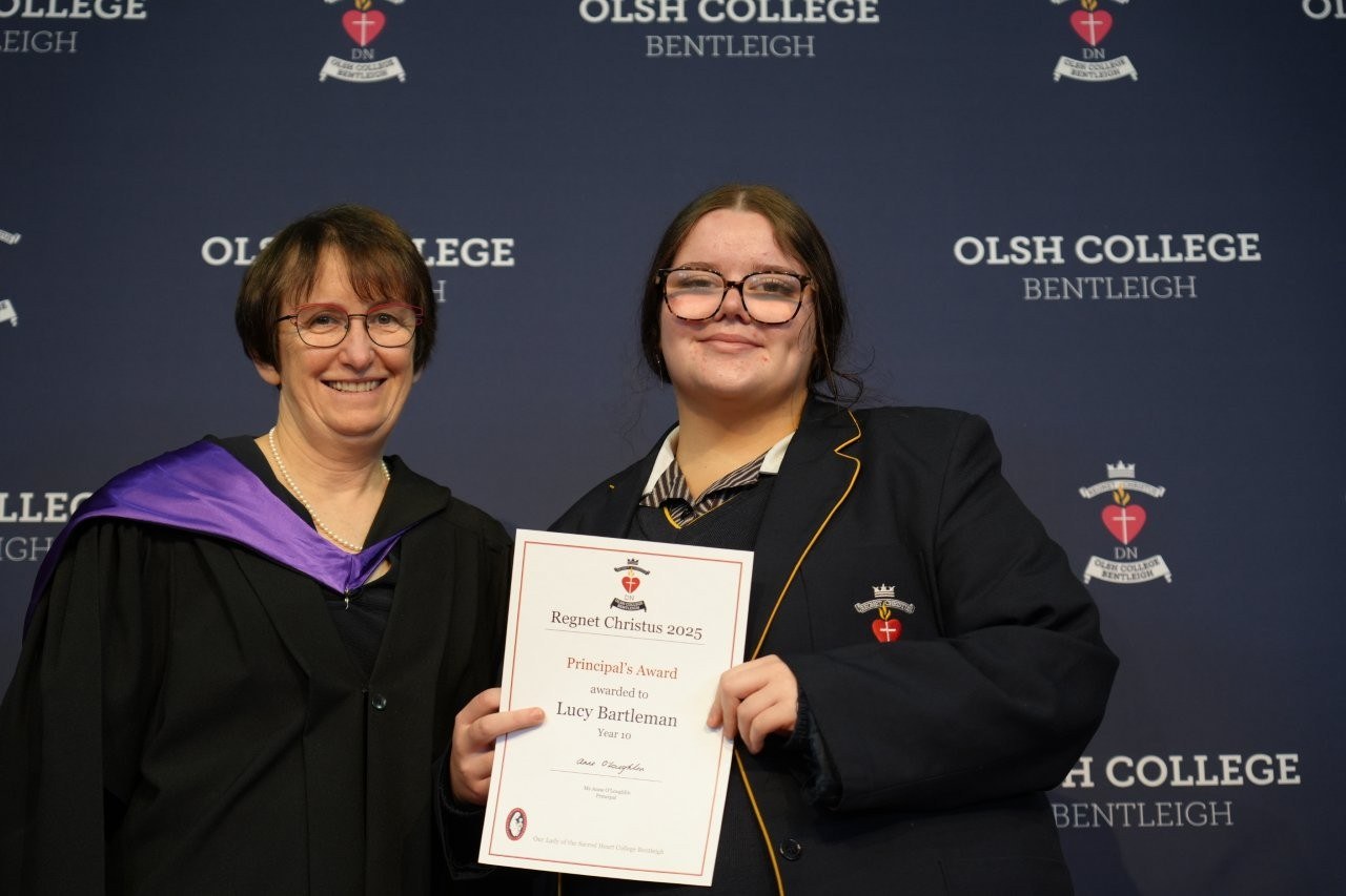 Our Regnet Christus Awards recognised academic achievement, consistent application to studies and a demonstration of the OLSH College values by students across all year levels. Principal Anne O’Loughlin spoke of the pioneering spirit of the first OLSH Sisters and how that has been a recuring theme in 2025 in the initiatives of our students – from representing Australia at the APEC Stem Conference, to developing the student theme that has left a legacy of creating a ripple of kindness. It was a joy to celebrate growth, excellence and all that it means to be a Heart person