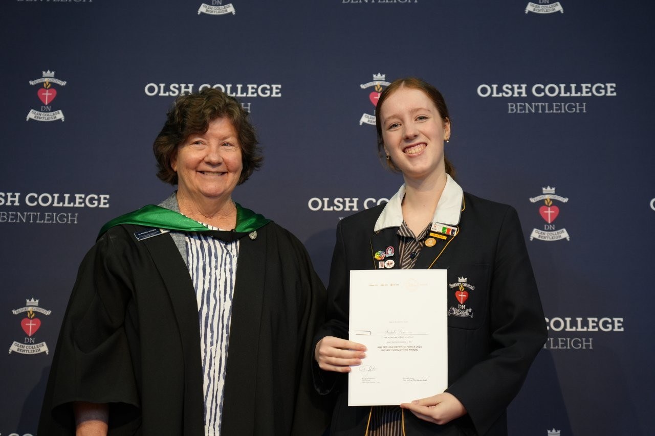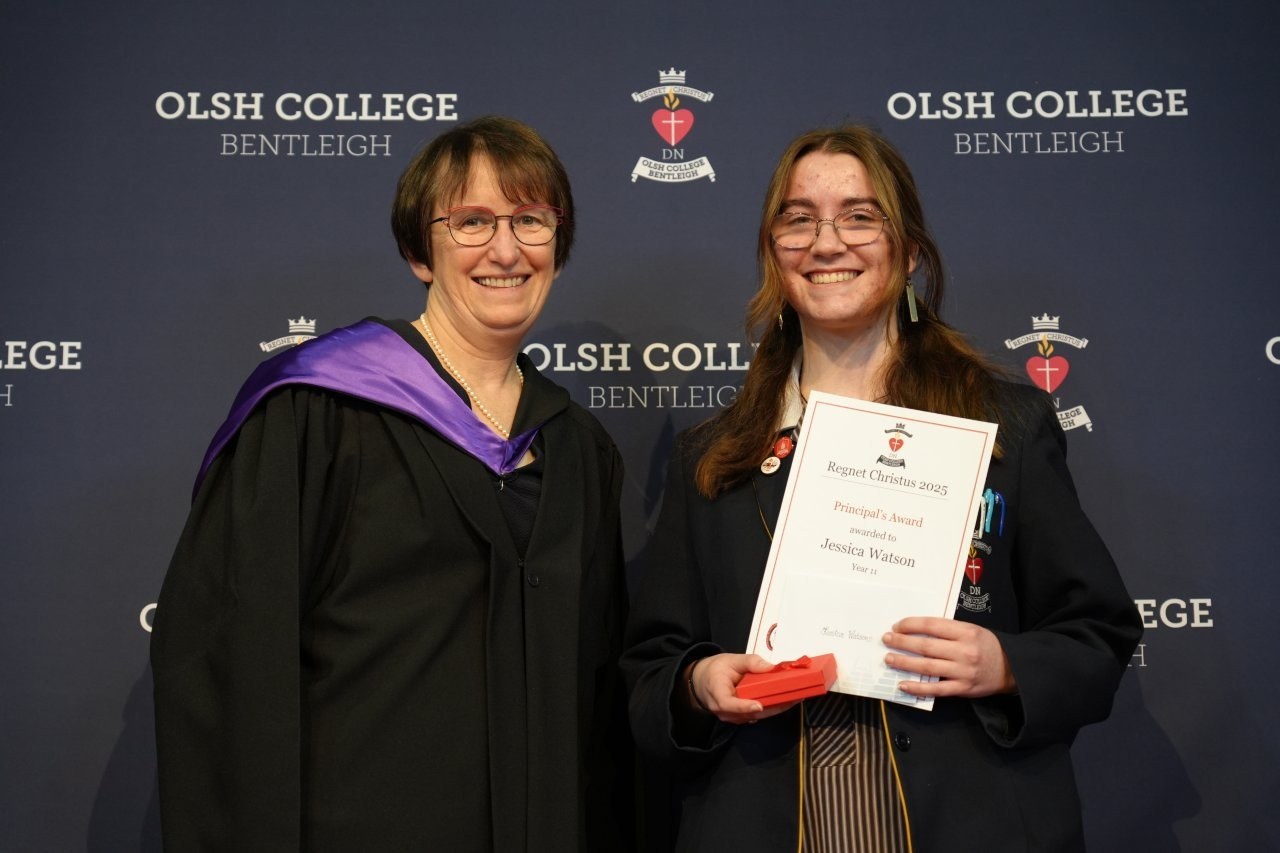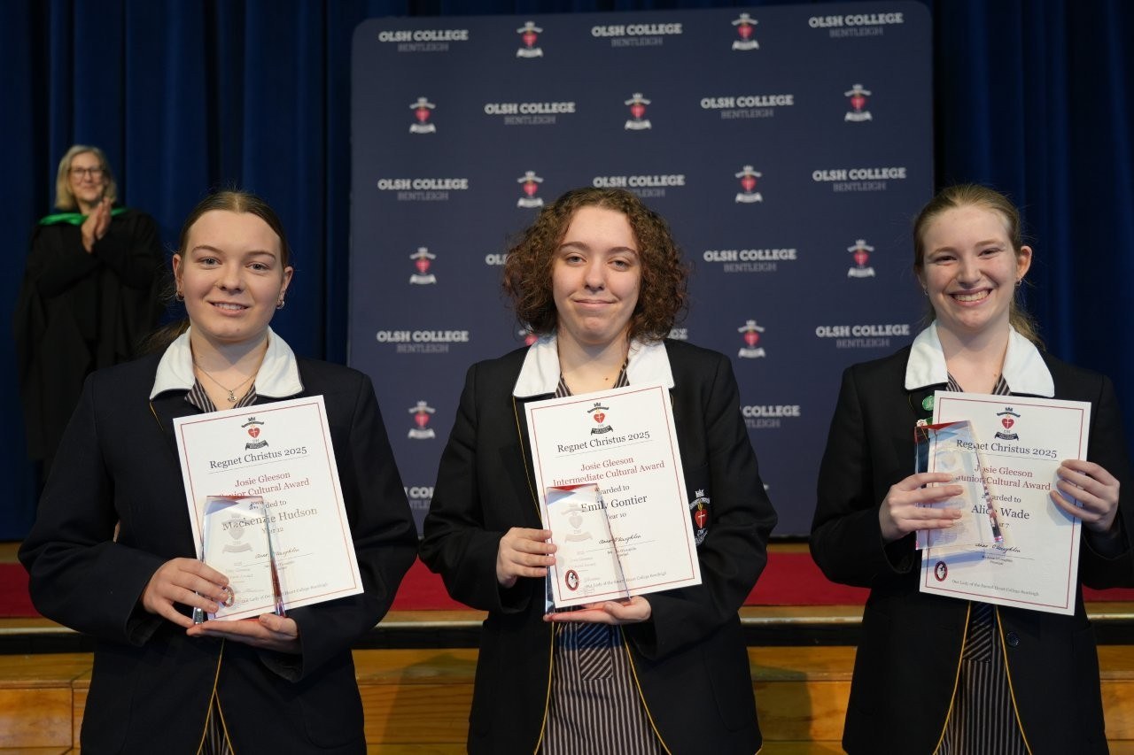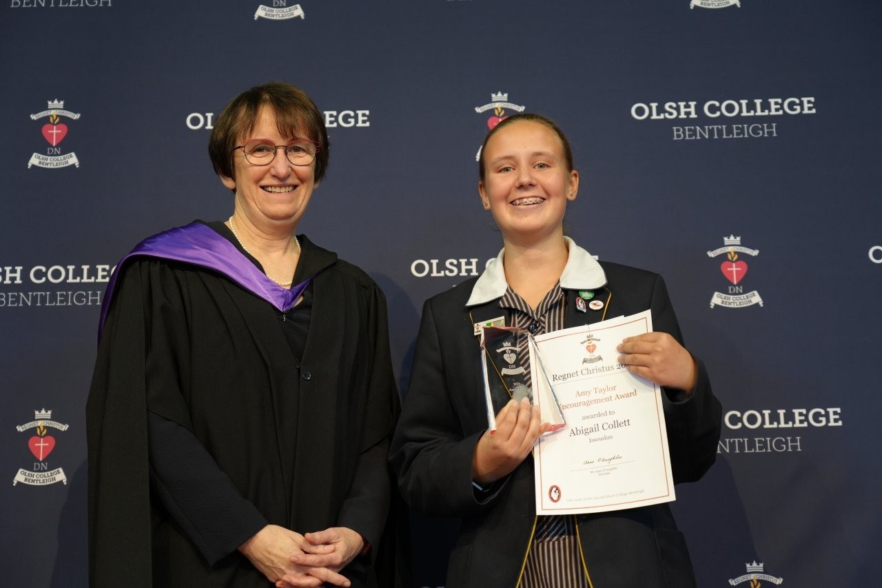 Our Regnet Christus Awards recognised academic achievement, consistent application to studies and a demonstration of the OLSH College values by students across all year levels. Principal Anne O’Loughlin spoke of the pioneering spirit of the first OLSH Sisters and how that has been a recuring theme in 2025 in the initiatives of our students – from representing Australia at the APEC Stem Conference, to developing the student theme that has left a legacy of creating a ripple of kindness. It was a joy to celebrate growth, excellence and all that it means to be a Heart person