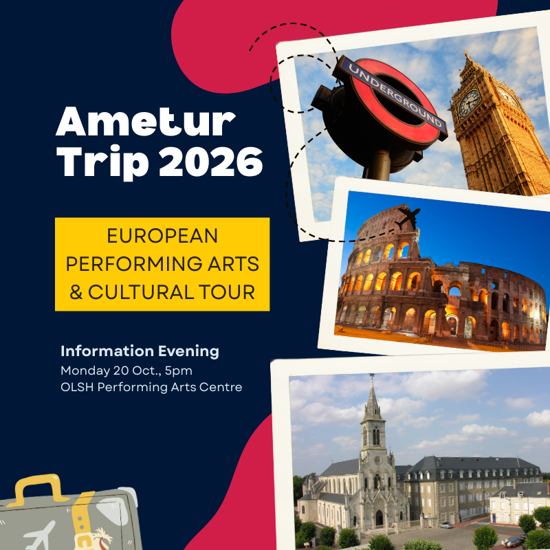 Our Lady of the Sacred Heart College is thrilled to announce plans for a Performing Arts and Culture Tour of Europe in September 2026, available to students from Issoudun (Year 9) through to Year 12 in 2026.